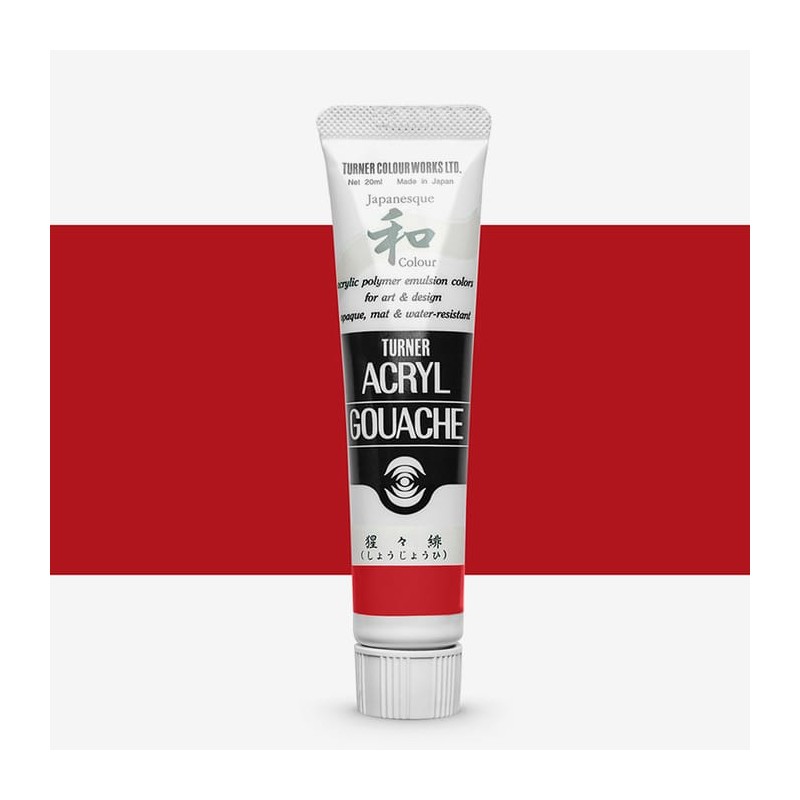 Japanesque Scarlet 320 (PR9 - PW6 - PR254 - PBk7)Turner Japaneseque Acrylic Gouache is een reeks dekkende, matte verven geïnspireerd op Japanse Nihonga, een traditionele verf met een licht grove textuur. Inhoud: 20 ml Sterk gepigmenteerd Gemaakt met acrylhars en pigmenten Soepele verwerking Gemaakt in Japan