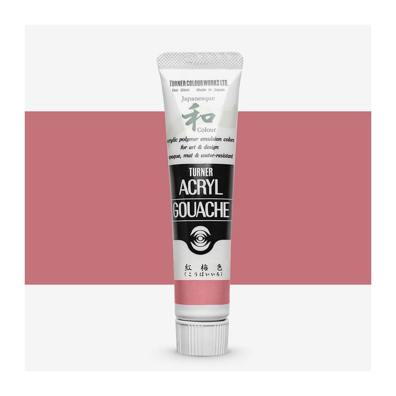 Japanesque Greyish Red 329 (PW6 - PR122 - PR254 - PBk7)Turner Japaneseque Acrylic Gouache is een reeks dekkende, matte verven geïnspireerd op Japanse Nihonga, een traditionele verf met een licht grove textuur. Inhoud: 20 ml Sterk gepigmenteerd Gemaakt met acrylhars en pigmenten Soepele verwerking Gemaakt in Japan