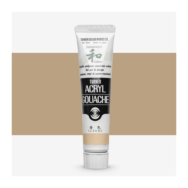 Japanesque Deep Beige 333 (PW6 - PBr11 - PY42 - PBk7)Turner Japaneseque Acrylic Gouache is een reeks dekkende, matte verven geïnspireerd op Japanse Nihonga, een traditionele verf met een licht grove textuur. Inhoud: 20 ml Sterk gepigmenteerd Gemaakt met acrylhars en pigmenten Soepele verwerking Gemaakt in Japan