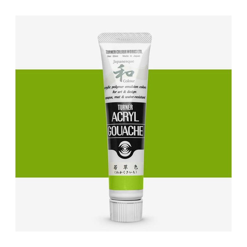 Japanesque Pale Green 340 (PW6 - PY42 - PG7)Turner Japaneseque Acrylic Gouache is een reeks dekkende, matte verven geïnspireerd op Japanse Nihonga, een traditionele verf met een licht grove textuur. Inhoud: 20 ml Sterk gepigmenteerd Gemaakt met acrylhars en pigmenten Soepele verwerking Gemaakt in Japan