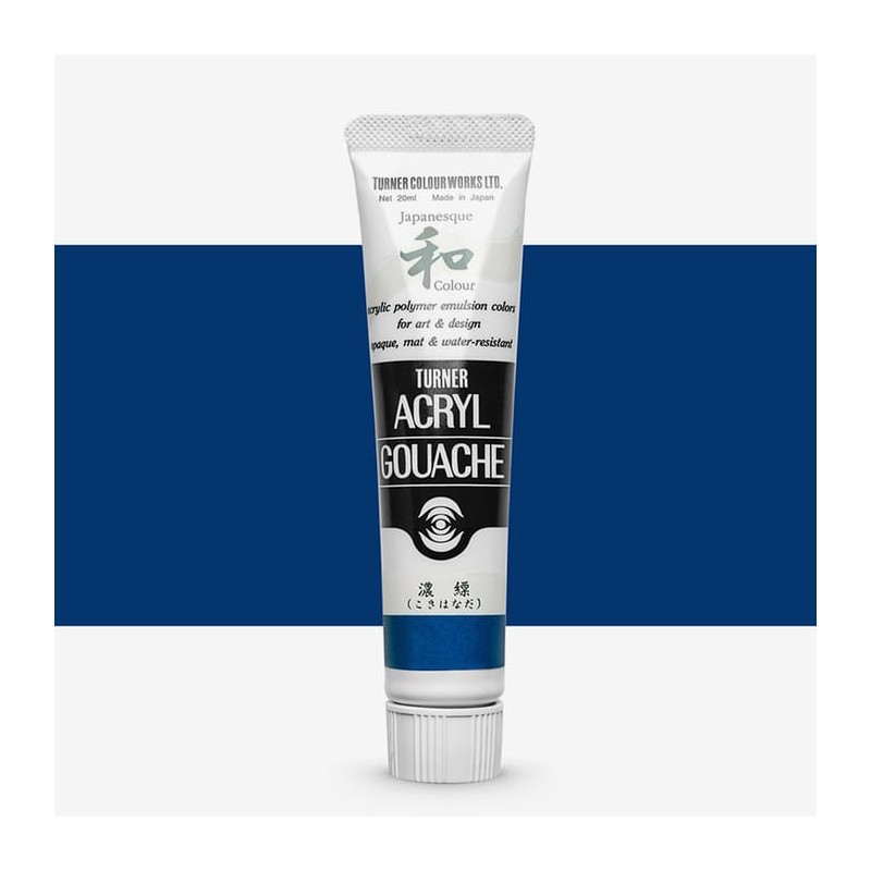 Japanesque Dark Green 347 (PY55 - PR254 - PB15:3 - PBk7)Turner Japaneseque Acrylic Gouache is een reeks dekkende, matte verven geïnspireerd op Japanse Nihonga, een traditionele verf met een licht grove textuur. Inhoud: 20 ml Sterk gepigmenteerd Gemaakt met acrylhars en pigmenten Soepele verwerking Gemaakt in Japan