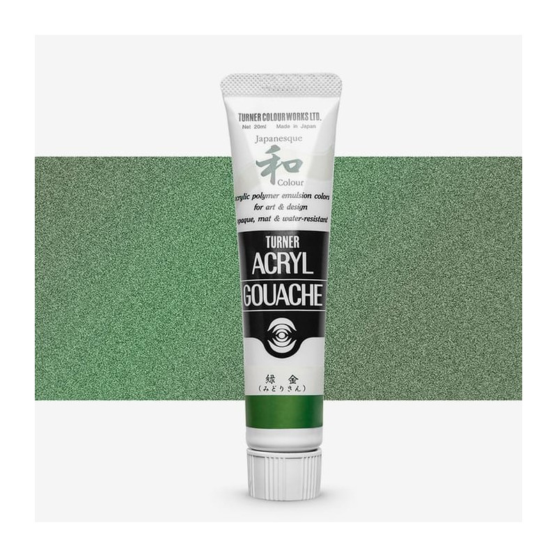Japanesque Olive Green 344 (PY42 - PR101 - PB15:3 - PBk7)Turner Japaneseque Acrylic Gouache is een reeks dekkende, matte verven geïnspireerd op Japanse Nihonga, een traditionele verf met een licht grove textuur. Inhoud: 20 ml Sterk gepigmenteerd Gemaakt met acrylhars en pigmenten Soepele verwerking Gemaakt in Japan