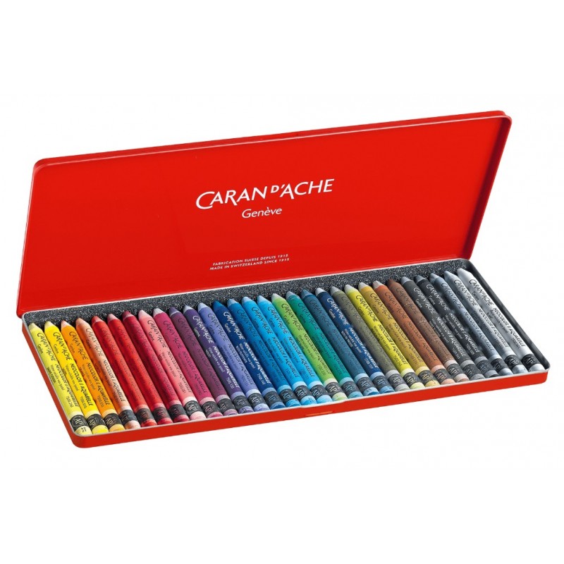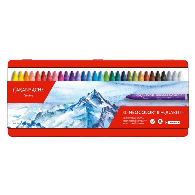 Caran d'Ache metalen etui met 30 kleuren Neocolor II Aquarelle wateroplosbare waskrijtjes.