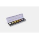 Hoogwaardige verftabletten in High Chroma kleuren. Te gebruiken als aquarelverf, ideaal voor handlettering. Formaat van de napjes 30x22mm. Deze set bevat de kleuren High Reflection Gold, Brilliant Rust, Sparkling Pink, High Chroma Blue, High Chroma Green en Galaxy Black.