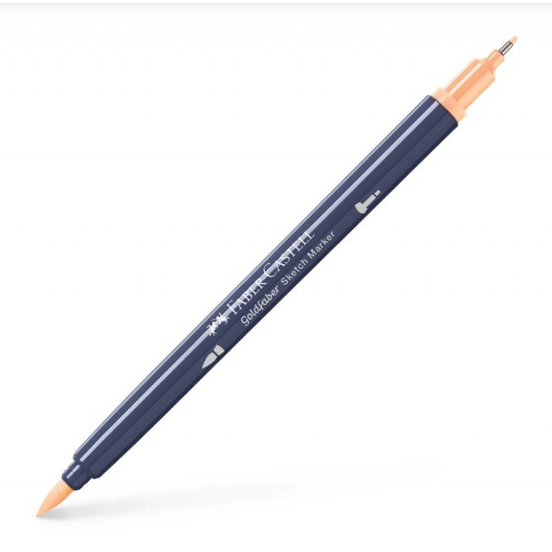 Faber-Castell Goldfaber Sketch Marker - Coral (131) Marker op alcoholbasis met twee punten: een zachte, flexibele penseelpunt voor vlakken en variabele lijndiktes en een metalen finelinerpunt (0,6 mm) voor contouren en details. De inkt droogt snel, is waterbestendig en veegvast. Creëer diepte en schaduwen door herhaaldelijk aanbrengen van kleurlagen.