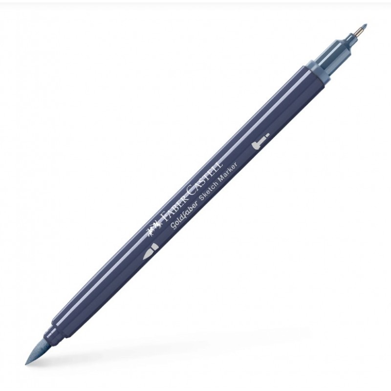 Faber-Castell Goldfaber Sketch Marker - Cold Grey XI (241) Marker op alcoholbasis met twee punten: een zachte, flexibele penseelpunt voor vlakken en variabele lijndiktes en een metalen finelinerpunt (0,6 mm) voor contouren en details. De inkt droogt snel, is waterbestendig en veegvast. Creëer diepte en schaduwen door herhaaldelijk aanbrengen van kleurlagen.
