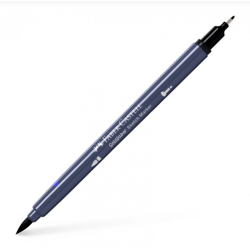 Faber-Castell Goldfaber Sketch Marker - Azure Blue (449) Marker op alcoholbasis met twee punten: een zachte, flexibele penseelpunt voor vlakken en variabele lijndiktes en een metalen finelinerpunt (0,6 mm) voor contouren en details. De inkt droogt snel, is waterbestendig en veegvast. Creëer diepte en schaduwen door herhaaldelijk aanbrengen van kleurlagen.