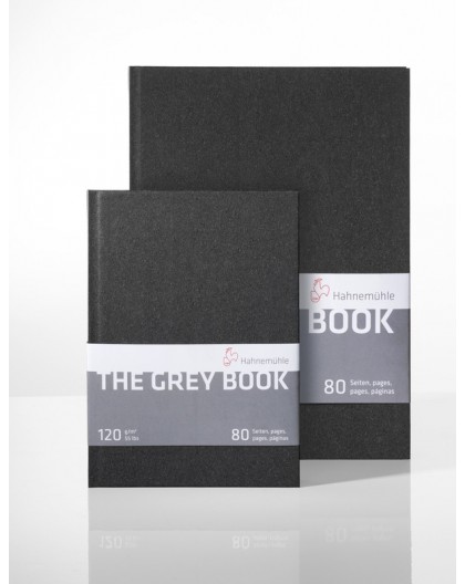 De stevige, harde kaft van The Grey Book is subtiel gemêleerd en voelt prettig aan. Alle pagina's zijn in verschillende lagen gebonden en met draad gestikt, waardoor ze plat liggen en het mogelijk wordt om over de middenvouw heen te werken. Een bladwijzerlint geeft extra uitstraling en gebruiksgemak aan dit elegante schetsboek
