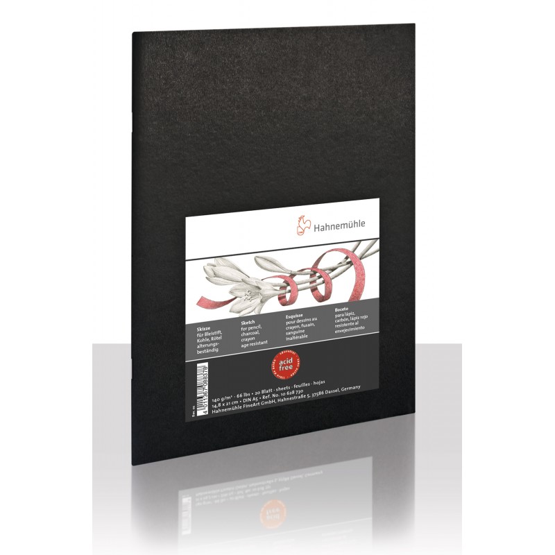 Tekenschriftje (geniet) met soepele zwarte kaft, 140 g/m² wit tekenpapier