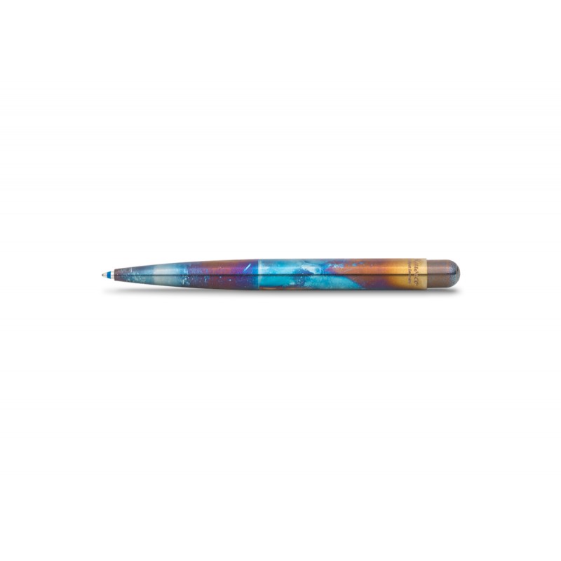 De Kaweco minimalistische balpen van geblauwd roestvrij staal.