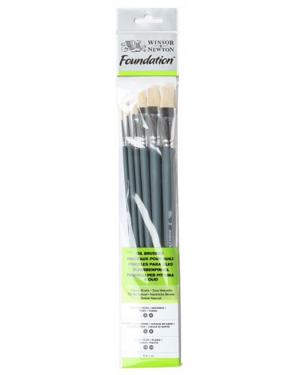 W&N Foundation, set van 6 varkensharen penselen met lange steel - kwaliteit: economy pack.