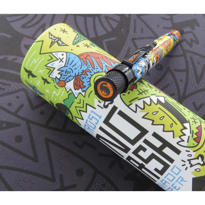 Maak je klaar om te BRULLEN deze zomer, want DinoSmash komt naar een stad bij jou in de buurt. Ze hebben trek in barbecue, ijskoude drankjes en perziktaart, want het is warm buiten! Deze nieuwe Tornado Popper is bedrukt met felle kleuren en opvallende dinosaurussen om je energie op te krikken. Grijp een DinoSmash en laat je dino krachten zien, want dit is verre van een doorsnee schrijfinstrument!