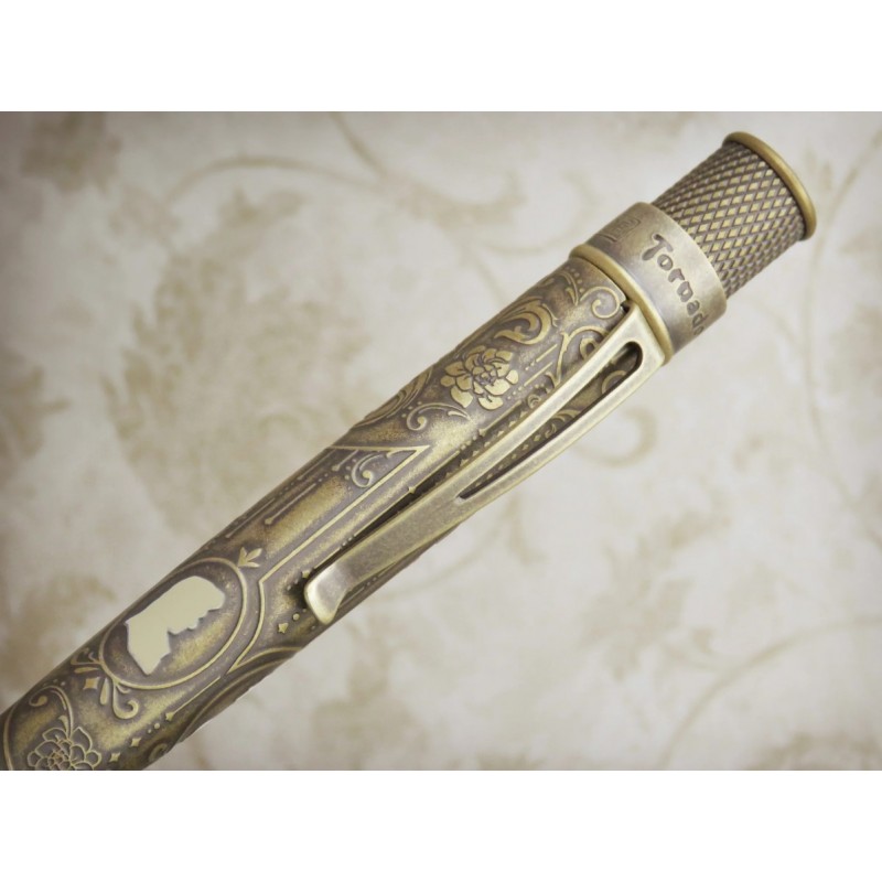 Retro51 introduceert met trots een van de meest gekoesterde romans uit de literatuur in de Literaire Collectie: de Pride and Prejudice Tornado™ Rollerball! Geïnspireerd door Jane Austens tijdloze verhaal over liefde, humor en sociale complexiteit, heeft deze pen een elegant ontwerp met ingewikkelde patronen, bloemen en broche-achtige portretten in profiel, geëtst tegen het prachtige stonewashed messing en van de twee hoofdpersonages uit de roman, Elizabeth Bennet en Fitzwilliam Darcy, die het Regency-tijdperk oproepen – perfect voor fans van deze klassieke literatuur.