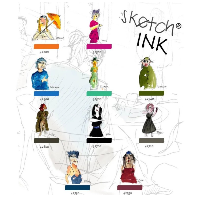 Dankzij de formule met zeer fijne pigmenten heeft Sketch INK een perfecte vloei. Daardoor is deze inkt uitermate geschikt voor het tekenen van fijne contourlijnen en is de droogtijd beperkt waardoor de tekening snel kan ingekleurd worden.