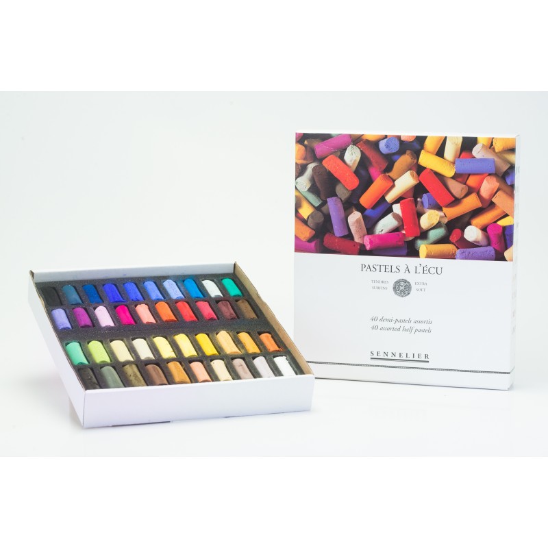 Sennelier selectie van zachte pastels à l'Ecu met uitzonderlijke lichtechtheid - met 40 geassorteerde kleuren in een stevige kartonnen doos.