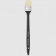 Penseel met synthetische vezels - imitatie natuurhaar. Platte, korte steel in hout rood/zwart gelakt, huls in blik. Beschikbaar in 3 breedte 30mm / 40mm / 50mm